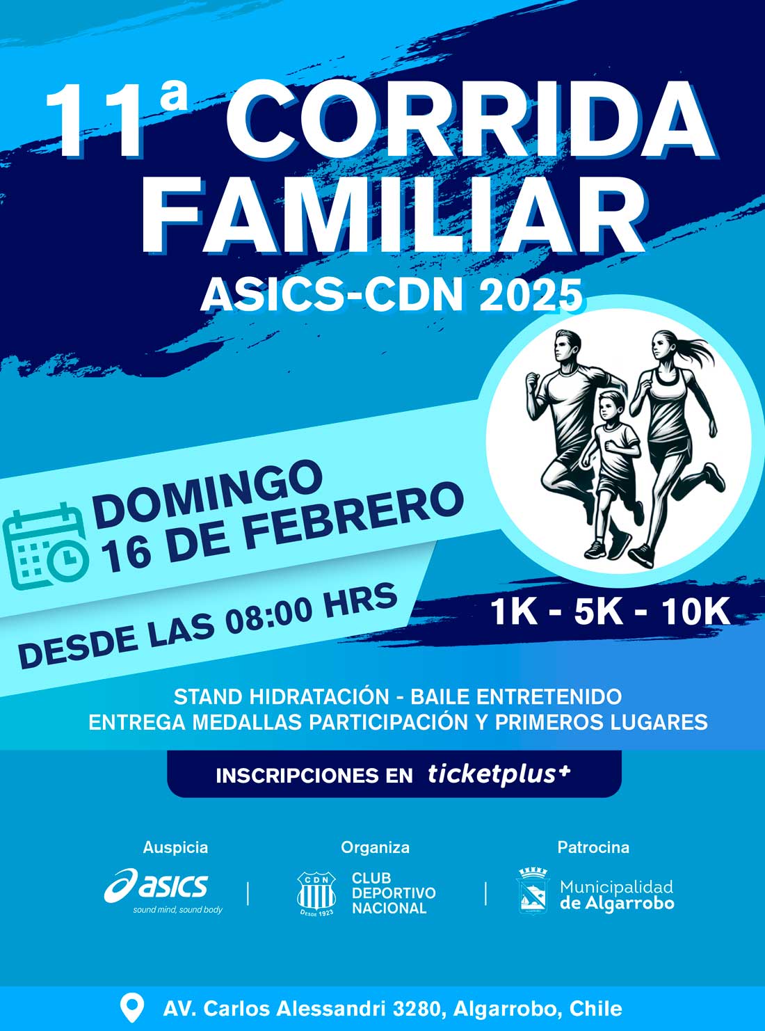 El 16 de febrero de 2025, Algarrobo será el escenario de la CORRIDA ASICS CLUB DEPORTIVO NACIONAL, un evento que promete ser la cita más emocionante del verano. Desde las 08:30 hrs, todos los amantes del running y la actividad al aire libre están invitados a disfrutar de una jornada única en un entorno natural inigualable.